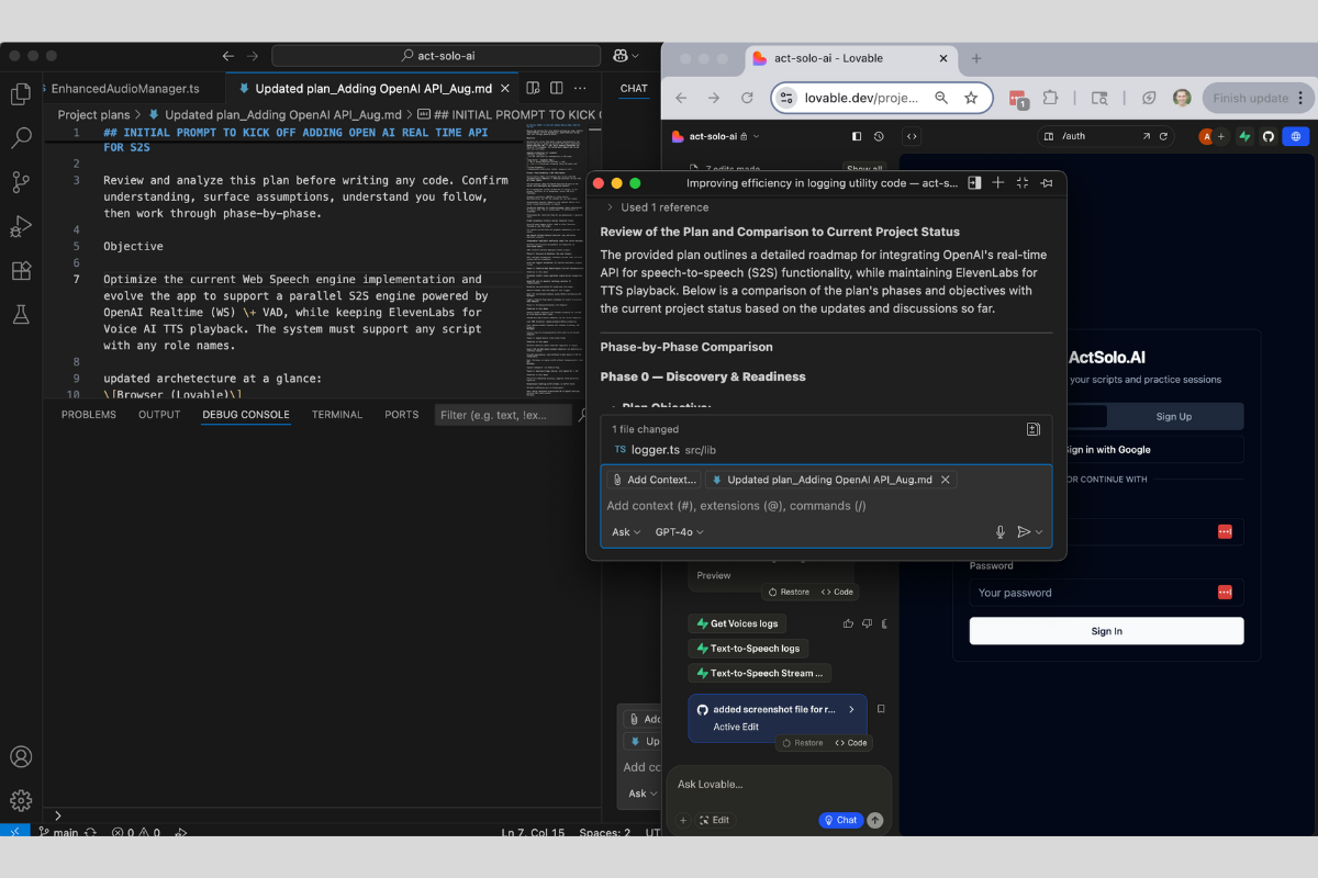 Now, instead of spinning up a whole new part of this project, I’m actively working on updating the ActSolo teleprompter to support speech-to-speech (S2S) in its current state.